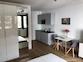 Die Pantryküche u.a. mit Mikrowelle, Wasserkocher, Nespresso-Kaffeemaschine und Esstisch befinden sich im restlichen Teil des Apartments.