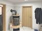 Im Obergeschoss befindet sich ebenfalls eine 2,5-Zimmerwohnung. Über den Flur sind das Schlaf- und das helle Wohnzimmer sowie der Essbereich mit offener Küche zu erreichen. Vom Esszimmer besteht Zugang zum Süd-Balkon. In der Küche befindet sich eine moderne Einbauküche. Das modern geflieste Bad ist mit einer großen Dusche, großem Waschbecken mit Unterschrank und WC ausgestattet. Weiter sind ein Abstellraum und ein Schwedenofen vorhanden.