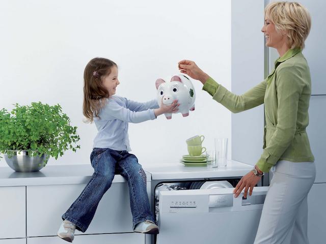 Werden neue Elektrogeräte für den Haushalt angeschafft, sollte man sparsame Geräte bevorzugen. Besonders bei großen Stromverbrauchern wie Kühl- und Gefriergerät, Spül- und Waschmaschine, Trockner und Herd amortisieren sich die Anschaffungskosten schnell durch die täglichen Einsparungen. Auch wenn man sich keine neuen Geräte leisten kann, helfen bereits kleine Veränderungen der Gewohnheiten viel zu sparen. Kühl- und Gefrierschrank müssen nicht mit voller Leistung kühlen. Bereits sieben Grad im Kühlschrank und -18 Grad im Gefrierschrank reichen zur Aufbewahrung der Lebensmittel aus. Man sollte darauf achten, dass beide Geräte möglichst weit weg von Herd oder Heizung an einer kühlen Stelle stehen. Auch zum Waschen reichen niedrige Temperaturen. Wäsche wird normalerweise bei 30 Grad mit heutigem Waschmittel sauber und muss nicht mit 40, 60 oder gar 90 Grad gewaschen werden. Selbstverständlich sollte die Waschmaschine nur voll beladen laufen – dies gilt auch für die Geschirrspülmaschine. Durch Trocknen der Wäsche an der frischen Luft, kann auf den stromfressenden Trockner verzichtet werden. Wird er dennoch verwendet, sollte die Wäsche, um schneller zu trocknen, vorher geschleudert werden.