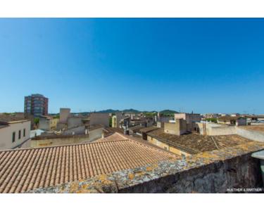 Im oberen Stockwerk befinden sich 3 der Schlafzimmer und eine Dachterrasse mit Blick auf die wunderschöne Kirche von Manacor.
