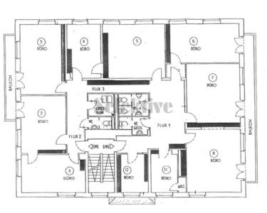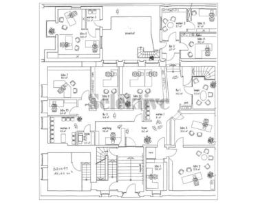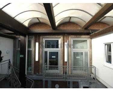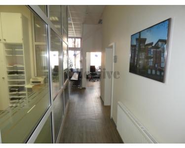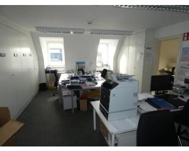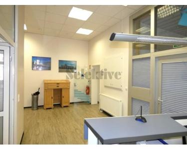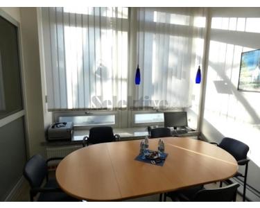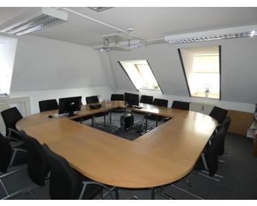 Die Büroräume im Erd-, Ober- und Dachgeschoss sind modern ausgestattet, Telefon- und Internetanschlüsse sind in ausreichender Form vorhanden. Die Büroflächen teilen sich in Einzel- und Gruppenbüros sowie kleinere und größere Besprechungsräume auf. Getrennte Sanitäranlagen für Frauen und Männer sind auf allen Etagen vorhanden.