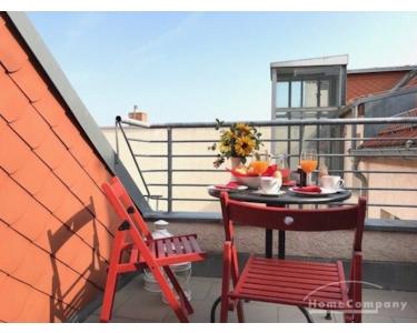 Charmante Dachgeschosswohnung im Herzen des Prenzlauer Berges. Die Wohnung erstreckt sich über zwei Ebenen und bietet eine kleine, aber gemütliche Terrasse. Die Ausstattung ist modern und hochwertig. Die vollausgestattete Einbauküche überzeugt mit einer Alu-tec Küche. Internet und Waschmaschine sind auch vorhanden.