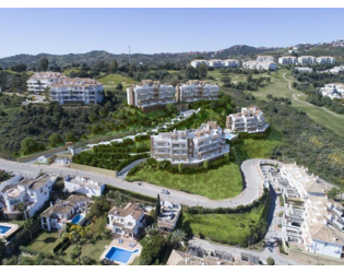 Der neue Wohnkomplex Grand View mit atemberaubendem Rundblick auf die Golfplätze und die Bergkette Sierra de Mijas bietet: