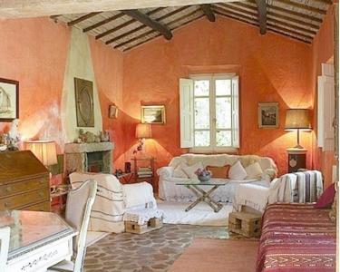 Ein langgezogenes Haus entlang des Flusses Rio San Giovanni derzeit unterteilt in 3 Wohnungen, 2 davon 2 stöckig, liebevoll und äusserst individuell erstellt und ausgestattet, alle mit sehr privater Terrasse zum Fluss hin umgeben von einem