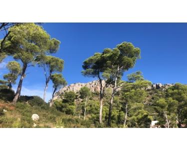 Die Gebäude fügen sich harmonisch in den Pinienhain