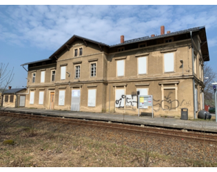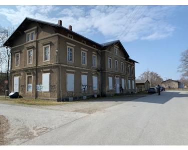Das denkmalgeschützte Gebäude ist der ehemalige Bahnhof und erstreckt sich vom Erdgeschoss, über das Obergeschoss bis hin zum teilweise ausgebauten Dachgeschoss. Das Dach wurde hier bereits erneuert. Zusätzlich befinden sich Lagermöglichkeiten im Keller.