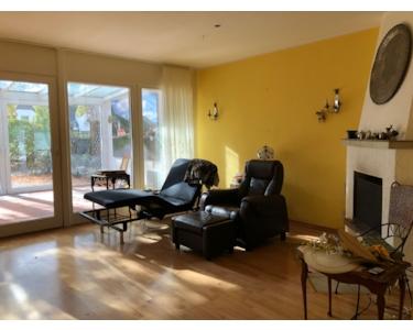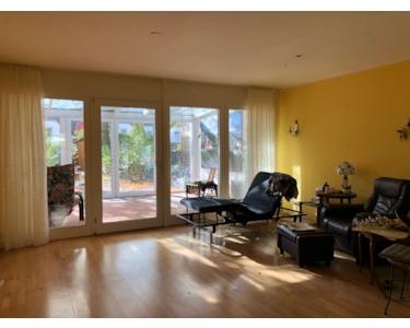 Vom Wohn-, Esszimmer gelangt man auf die schöne, sonnige Terrasse (bzw. in den Wintergarten) mit Zugang in den Garten. Am Ende des Gartens befindet sich ein Gartentor zur Strasse hin.