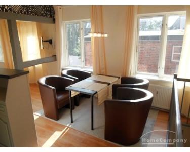 Schöne 2-Zimmer-Wohnung in einem historischen Lübecker Altstadthaus über zwei Etagen, Eingang von der Hofseite. Das Objekt ist komplett möbliert und verfügt über ein Duschbad und eine Einbauküche. Im Erdgeschoß befinden sich Schlafzimmer und Bad, im Obergeschoß die offene Küche, die Essecke und das Wohnzimmer.