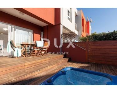 Das Reihenhaus befindet sich in attraktiver Lage in einer ruhigen und friedlichen Gegend. Die Lage ist in jeder Hinsicht günstig: Sie ist mit Umag (6 km - bis zum Zentrum von Umag) und der Hauptstraße Umag - Koper (5 km - bis zum Grenzübergang Plovanija - SLO) verbunden. Kanegra, einer der schönsten Strände der Riviera von Umag, liegt nur 2 km von der Unterkunft entfernt. Ein Golfplatz und das Elite-Kempinski-Resort sind nur 6 km entfernt. Die Terrasse bietet einen schönen Blick auf das üppige Grün der istrischen Wälder und die üppige Vegetation, die für die dringend benötigte saubere Luft sorgt. Das Erdgeschoss verfügt über ein Wohnzimmer, eine Küche, ein Bad und eine größere Terrasse als Erweiterung des "offenen Wohnzimmers" mit einer Glaswand. Die Terrasse ist teilweise überdacht - unterhalb des Obergeschosses. Im Obergeschoss befinden sich zwei Schlafzimmer, von denen eines eine Terrasse im Innenhof und ein größeres Badezimmer mit Toiletten hat. Die Böden sind durch eine Innentreppe verbunden. Das gesamte Gebäude ist mit erstklassigem Material ausgestattet: Es besteht aus Poroterm-Blocksteinen mit verformter Fassade, eingebauten erstklassigen Fliesen und italienischer Sanitärkeramik sowie hochwertiger PVC-Sechskammer-Außenschreinerei mit eingebauten Aluminium-Rollläden. Das Haus ist mit Daikin-Klimaanlagen, Wechselrichter, Satelliten-TV-Antenne, Telefonleitung usw. ausgestattet. Im Garten gibt es einen Swimmingpool und einen Whirlpool. Das Haus ist voll möbliert. Ideales Objekt für den Tourismus oder für ein ruhiges Familienleben!