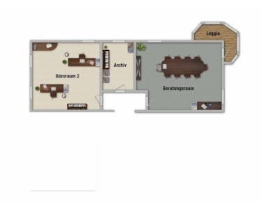 3 Büroräume (2 mit ca. 26 m² und 28 m², 1 mit ca. 8 m²) und kleiner Loggia, Küche, WC, Balkon auf der Etage in Gemeinschaftsnutzung