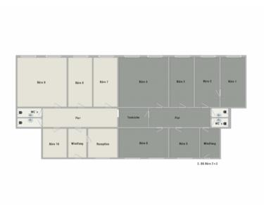 Große Büroetage in der obersten Etage mit 10 Büroräume, 1 Empfang, Teeküche, 4 WC´s