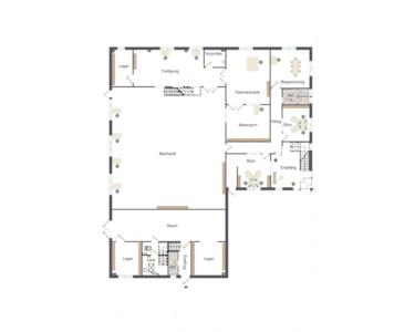 Eingangsbereich, WC, 3 Lagerräume, große Haupthalle von ca. 346 m², Heizungsraum weitere 58 m² als Fertigung