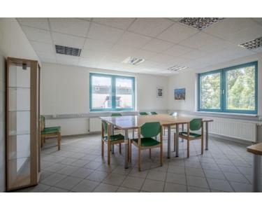 rechte Seite der Halle ca. 82 m² für Büro und Archiv; linke Hallenseite mit komfortablen Sozialräumen und Aufenthaltsraum ca. 66 m² . Hinter dem Gebäude besteht die Möglichkeit zur Erweiterung der Halle oder als Freifläche zum Parken von LKW´s.