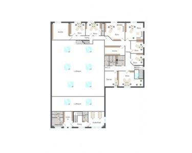ca. 207 m² mit fünf weiteren Büros, ein Archivraum, ein Serverraum, moderne WC Anlage und eine voll eingerichtete Küche.