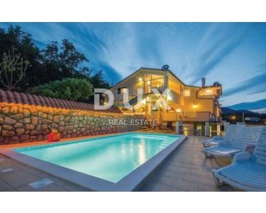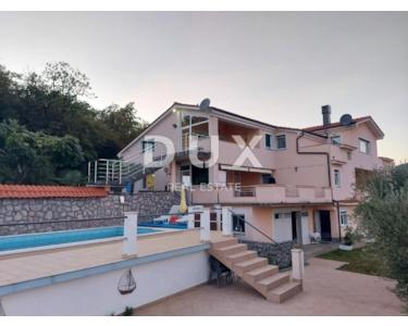 Das Haus ist nach Süden ausgerichtet mit einem wunderschönen Panoramablick auf die gesamte Kvarner Bucht und Inseln! Die Villa besteht aus 2 Teilen. Der erste Teil, in dem sich 4 Wohnungen und ein Garagenplatz befinden, und der Teil, in dem sich 2 große Wohnungen mit Pool befinden. Im ersten Teil befinden sich 2 größere Wohnungen von ca. 100m2 (Wohnzimmer, Küche, Esszimmer, 2 Schlafzimmer, Tank und Badezimmer) und 2 kleinere Wohnungen von 50 m2 (Wohnzimmer, Küche, 1 Schlafzimmer, Garderobe und Badezimmer). Die Garage im Erdgeschoss ist geräumig, bietet Platz für mindestens 4 Autos und mehrere Motorräder und hat eine Deckenhöhe von über 3,5m2. Die Garage verfügt über eine Toilette und mehrere Räume, die als Lager für verschiedene Dinge dienen können. Im zweiten Teil der Villa befinden sich 2 größere Wohnungen und Waschküchen im Erdgeschoss, Gesamtfläche von 100m2 die auch in 1 größere oder 2 kleinere Wohnungen umgewandelt werden können oder für Fitnessraum, Sauna, Kinderspielzimmer genutzt werden können und dergleichen. Große Wohnung im 1. Stock besteht aus Wohnzimmer, Esszimmer, Küche, 2 Abstellräumen, 4 Schlafzimmern und einem Badezimmer. Die Wohnung im 2. Stock besteht aus einem Wohnzimmer, Esszimmer, Küche, Abstellraum, 2 Schlafzimmern und einem Badezimmer. Beide Wohnungen in diesem Teil verfügen über große überdachte Terrassen mit herrlichem Meer- und Poolblick. GARTEN: Der Garten wird seit vielen Jahren angelegt und ständig gepflegt. Es enthält einen Kamin und eine unterirdische Zisterne namens Regenwassersammeltanks mit einem Volumen von 30m3. Im Garten befindet sich ein Swimmingpool mit schönem Blick auf das Meer, die Kvarner Bucht und die Inseln. Derzeit haben die Besitzer auch einen Garten, in dem sie einige Gemüsesorten anbauen, und auf dem Hof wachsen mehrere Obstbäume. Vor der Villa befinden sich 6 markierte Parkplätze. Sauberes und ordentliches Anwesen. Profitabel während der gesamten Sommersaison. Sicherlich eine schöne Immobilie für ein luxuriöses Familienleben, aber auch als Investition in Form von Tourismus geeignet. EINZIGARTIGE IMMOBILIE IN EINER GROSSARTIGEN LAGE, DIE AUFMERKSAM WERT IST !!!