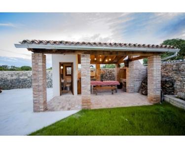 Nur wenige Autominuten vom Zentrum von Rovinj in Krmed entfernt wurde diese wunderschöne, einzigartige Steinschönheit erbaut. Diese exklusive Villa, umgeben von unberührter Natur, wurde (im Jahr 2016) mit einer Fläche von 320 m² auf zwei Etagen erbaut. Das Erdgeschoss verfügt über eine voll ausgestattete und möblierte Küche mit Essbereich und geräumigem Wohnzimmer, ein Schlafzimmer mit Kamin, zwei Badezimmer und eine Terrasse mit Tisch und Stühlen. Im ersten Stock befinden sich 3 Schlafzimmer, jedes mit eigenem Bad und einer Terrasse mit Sitzmöbeln. Es ist voll klimatisiert und in der gesamten Villa können Sie die sorgfältig ausgewählten istrischen Details sehen, die es schmücken. Im äußeren Teil gibt es eine Sommerküche mit Grill und Toilette, einen 40 m² großen Swimmingpool mit eingebautem Hydromassagesystem, ein Sonnendeck und einen geräumigen und sorgfältig angelegten Garten von 600 m². Die Unterkunft verfügt über eine vollständige Dokumentation. Eigentum 1/1, keine Belastungen.