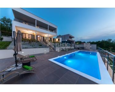 Diese erstklassige Niedrigenergie-Designervilla befindet sich 9 km von der Altstadt von Labin entfernt. Die Gesamtfläche des Gebäudes beträgt 315 m2; Nettofläche 243 m2; Hoffläche 3.148 m2; Pool 10 x 3,5 m; Sonnendeck 130 m2. Das Erdgeschoss verfügt über eine ausgestattete Küche mit Essbereich und ein geräumiges Wohnzimmer mit moderner Klimaanlage und einem schönen dekorativen Kamin, Toilette, Schlafzimmer mit Bad und Abstellraum. Die breite vordere Terrasse bietet Ruhe, Spaß und Grillen mit einem bezaubernden Blick auf die grünen Hügel, Učka und das Tal des Flusses Raša. Neben dem Eingang befindet sich ein Spielzimmer. Ein geräumiges Sonnendeck mit einem beheizten Pool, einem Gegenstrom-Schwimm- und Massagegerät und einer ausgeklügelten Beleuchtung wird dem zukünftigen Besitzer den vollen Genuss ermöglichen. Im Obergeschoss befinden sich drei Schlafzimmer und drei Badezimmer sowie eine vordere Terrasse mit fantastischer Aussicht. Auf der Rückseite des Hauses befindet sich eine weitere große Terrasse, auf der Sie wunderbar entspannen und die wunderschöne Landschaft oder die Morgensonne genießen können. Eine Installation für die geplante Installation einer Sauna, eines Fitnessraums und / oder eines Spielzimmers wurde auf die Terrasse gebracht. Die Badezimmer verfügen über eine ebenerdige Dusche mit einer Glaswand. Das Innere dieser Villa ist mit viel Aufmerksamkeit und Liebe dekoriert und kombiniert Erdtöne mit Weiß- und Grautönen, ausgestattet mit modernen Geräten und Möbeln und Möbeln, die größtenteils auf Bestellung aus der ursprünglichen slawonischen Eiche hergestellt wurden. Der gartenbaulich angelegte Terrassengarten besteht aus mehreren Ebenen, die den Eindruck der Exzellenz dieser Villa vervollständigen. Auf einer Ebene befindet sich ein beheizter Pool mit Sonnendeck, gefolgt von einem Kinderspielplatz und einem mediterranen Garten. Rund um die Villa wachsen mehr als 200 verschiedene Pflanzenarten - Kirschen, Birnen, Oliven, Photinia, Oleander, Lorbeer, Rosmarin, Lavendel, Albicans usw. Der gesamte Garten ist von einem automatischen Bewässerungssystem (programmierte Sprinkleranlage und "Drop by Drop") bedeckt.
