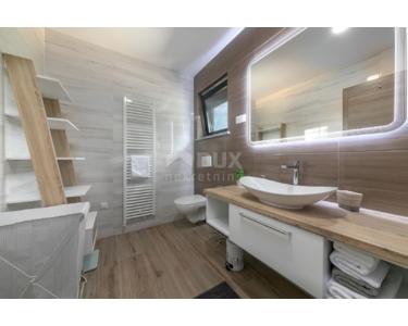ISTRIA - LABIN (Umgebung) Die Designer-Villa mit beheiztem Pool und freiem Blick ist ein Ferienhaus mit moderner Architektur, umgeben von fast unberührter Natur, Olivenbäumen und verschiedenen Obstbäumen sowie einem Weinberg und freiem Blick. Die Villa ist eine Art moderner Lebensstil in einer natürlichen Umgebung, entworfen, von höchstem Baustandard und sorgfältig ausgewählten Materialien, die zur Qualität und zum Angebot solcher Einrichtungen gehören. Die Villa wurde als Niedrigenergiegebäude mit modernsten Lösungen und Dämmstoffen gebaut. Dach-Solarkollektoren ermöglichen die Aufbereitung von Warmwasser mit Sonnenenergie, während das in einer unterirdischen Zisterne mit einer Kapazität von 80 m3 gesammelte Regenwasser zur Bewässerung des Hofes verwendet wird. Die Hülle des Hauses (Fassade, Dächer und Boden) sowie die eingebaute Zimmerei sorgen für eine hohe Energieeffizienz. Es wurden 6 Überwachungskameras installiert, die fast den gesamten Bereich des Hofs abdecken, und in allen Räumen wurde ein Einbruchmeldesystem mit Sensoren installiert. Überdachte und eingezäunte Parkplätze befinden sich vor dem Haus. Schiebetüren öffnen sich über Elektromotoren aus der Ferne. Neben der Autotür wurde eine Fußgängertür mit Gegensprechanlage und Kamera installiert. Sehr geehrte Kunden, die Besichtigung der Immobilie ist nur mit einem unterzeichneten Maklervertrag möglich, der die Grundlage für weitere Maßnahmen im Zusammenhang mit dem Verkauf und der Erhebung von Provisionen gemäß dem Gesetz über Immobilienmakler bildet.