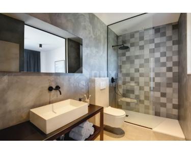 Erdgeschoss: Küche, Esszimmer und Wohnzimmer sind offen und haben Zugang zur Außenterrasse und zum Pool. Im Erdgeschoss befindet sich auch ein Schlafzimmer mit eigenem Bad, das Zugang zur Außenseite des Hauses mit einem Swimmingpool hat. Im Erdgeschoss befindet sich eine weitere Toilette zur gemeinsamen Nutzung. Auf der Außenterrasse befinden sich ein Esstisch für 14 Personen, Tischfußball, eine Sommerküche, ein Sonnenbereich, ein Ruhebereich und ein Swimmingpool. Der Pool hat eine Fläche von 52 m2, mi Heizmöglichkeit und Hydromassage. Erster Stock: Waschküche mit Trockner und Waschmaschine, 4 Schlafzimmer mit eigenem Bad, von denen drei Schlafzimmer Zugang zu einem überdachten Balkon haben.