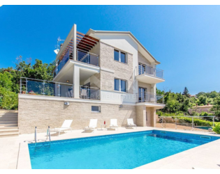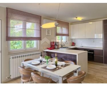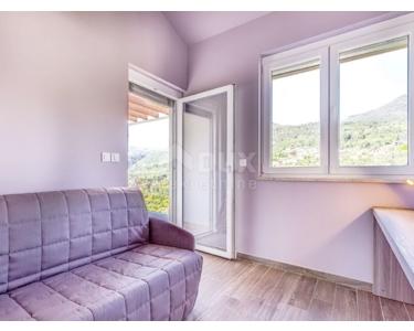 Die Villa ist in ein Untergeschoss, ein Erdgeschoss und einen ersten Stock unterteilt. Im 74m2 großen Erdgeschoss befinden sich ein Heizraum, ein Abstellraum und eine Garage für zwei Autos. Das Erdgeschoss erstreckt sich über 102 m2 und besteht aus einem Flur, einer Küche, einem Esszimmer, einem komfortablen Wohnzimmer, einem schönen Schlafzimmer und einem Badezimmer. Der erste Stock mit einer Gesamtfläche von 99 m2 besteht aus einem Flur, drei komfortablen Schlafzimmern, einem Arbeitszimmer und einem Badezimmer. Die Villa verfügt über zwei Balkone und zwei Terrassen (jeweils 19 m2) mit atemberaubendem Blick auf die Kvarner Bucht vom Süden, und auf Učka und den Naturpark vom Westen. Entsprechend der idealen Lage dieses Anwesens gibt es von fast jedem Teil des Hauses eine schöne freie Sicht, und das ganze Haus ist in Sonne und Wärme gebadet.