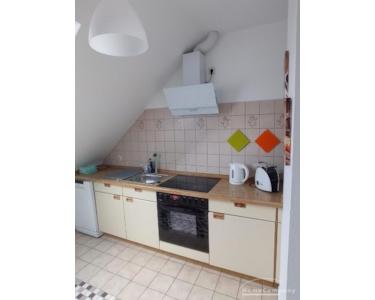 Die helle und freundliche, vollmöblierte Dachgeschosswohnung liegt in Klausbrook, in unmittelbarer Nähe zur Christian-Albrechts-Universität. Sie besteht aus einem großen Wohn-/Essbereich mit Zugang auf die sonnige Loggia. Die große Küche ist mit einem 45 cm breiten Geschirrspüler, Kaffeemaschine, Wasserkocher,Toaster und Mikrowellengerät ausgestattet. Der Kühlschrank besitzt ein Gefrierfach. Sämtliche notwendigen Küchenutensilien sind vorhanden.