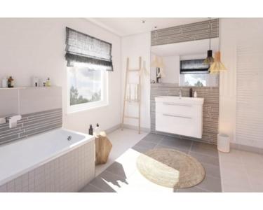 Inklusive : Bodenplatte auf Streifenfundament, Fußbodenheizung im gesamten Haus, Malerarbeiten - Feinputz in allen Räumen, individuelle Grundrissgestaltung nach Kundenwunsch, sowie anthrazitfarbene Fenster mit elektrischen Rollläden in 3-fach-Verglasung/6 Kammerprofil & Gäste WC.