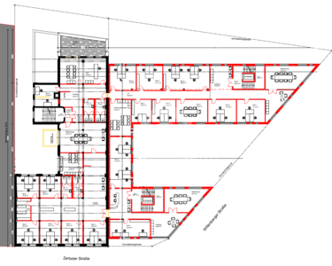 Neben dem hochwertig sanierten Altbau entstehen in dem Neubau repräsentative Büros. Der Bürokomplex hat eine Gesamtfläche von ca. 8992,7 m², die sich über 6 Etagen erstrecken und über mehrere Aufgänge erschlossen werden. Da sich das Projekt noch in der Planung befindet, können Sie Einfluss auf die Gestaltung bzw. Aufteilung Ihres Mietbereichs nehmen.