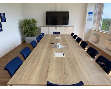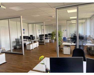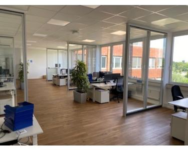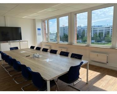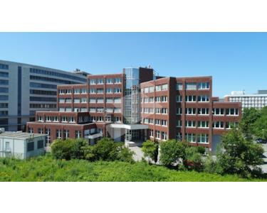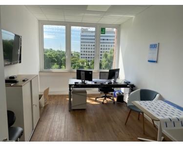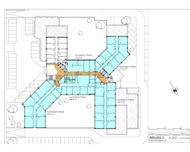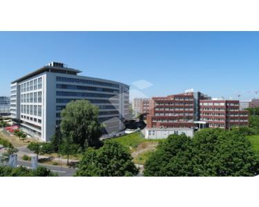 Das Bürogebäude befindet sich im Bürocenter Hammfeld in unmittelbarer Nähe der Südbrücke, dem wichtigsten Bindeglied zwischen Düsseldorf und Neuss.