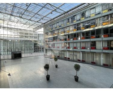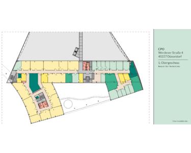 Das Düsseldorf Business Center vereint rund 32.000 m² Büros, Läden sowie Wohnungen, Restaurants und ein Hotel. Durchdachte Funktionalität, selbständige Architektur und hochflexible Nutzungsvielfalt ergänzen sich aufs Beste. Moderner Büro- und Hotelkomplex, exklusive und außergewöhnliche Gebäudearchitektur mit Atrium und teilweise außenliegenden Glasaufzügen, repräsentatives Eingangsfoyer etc.