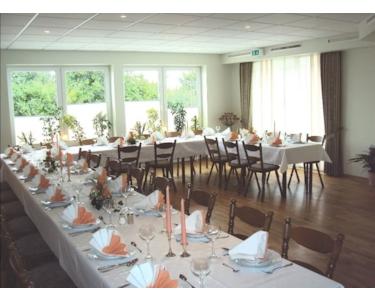 Der helle und freundliche Saal, in dem bis zu 180 Personen Platz finden, lässt sich in verschiedene Räumlichkeiten unterteilen. Ob klein und gemütlich, groß und feierlich, egal welche Art und Größe Ihre Veranstaltung hat, können die passenden Räumlichkeiten geboten werden.