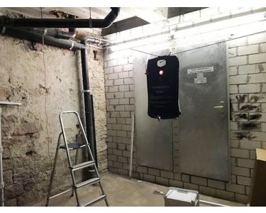 Eine Heizung kann problemlos eingebaut werden, da Gas und Abluft vorhanden sind.