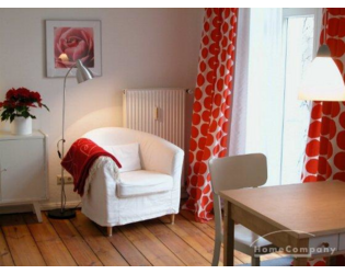 Ein-Zimmer-Wohnung in Berlin Kreuzberg, mit hochwertigem Mobiliar, gefliestem Wannenbad, Zentralheizung, Kabel TV, Sessel und Arbeitsplatz. Das Bett ist 140 cm breit.