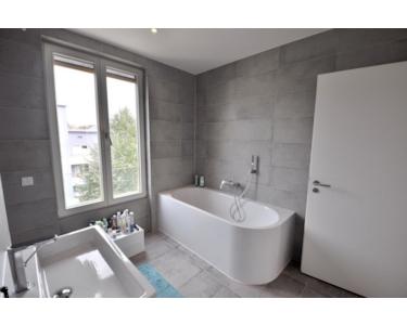 * Hochwertige Bad-Ausstattung von renommierten Marken-Herstellern mit Feinsteinzeug-Platten, bodengleicher Dusche & elektrischem Handtuchheizkörper