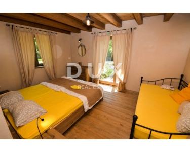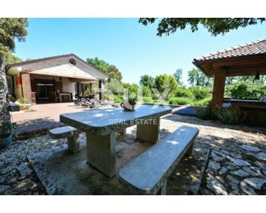 Rovinj liegt an der Westküste Istriens und ist heute eines der am weitesten entwickelten Touristenziele in Kroatien. Rovinj, auch bekannt als eine der malerischsten und romantischsten Städte im Mittelmeerraum, zieht seit Jahrzehnten eine große Anzahl von Touristen an, und die meisten von ihnen kehren Jahr für Jahr treu zurück. In der Nähe von Rovinj befindet sich eine wunderschöne Villa mit Pool in einzigartiger Lage. Es befindet sich auf einer Fläche von 4369 m2, gefüllt mit aromatischen mediterranen Pflanzen und umgeben von Olivenbäumen. Die Villa verfügt über eine autarke Wasserquelle und eine Solaranlage zur Stromerzeugung und Warmwasserbereitung. Das Erdgeschoss der Villa verfügt über ein wunderschön eingerichtetes Wohn- und Esszimmer und eine gut ausgestattete Küche mit rustikalen Elementen. Es gibt auch zwei Schlafzimmer im Erdgeschoss, jedes mit eigenem Bad, während die Galerie im Obergeschoss ein weiteres Schlafzimmer hat. Auf der überdachten Terrasse befindet sich eine Außenküche. Der Pool ist von einer Holzterrasse und mediterraner Vegetation umgeben und ist der perfekte Ort, um die Vorzüge dieser ruhigen Lage zu genießen. Es gibt auch einen Beachvolleyballplatz, Basketball, Badminton, Kleinfeldfußball und Tischtennis.