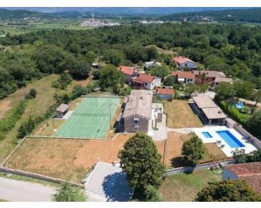 In der Nähe von Kršan steht diese authentische alte Villa zum Verkauf, die mit ihrem Design und einer Handvoll Inhalt auf den ersten Blick atemberaubend ist. Die Villa wurde 1926 erbaut und 2017 komplett renoviert. Sowohl außen als auch innen ist es mit außergewöhnlichem Stil und Liebe zum Detail dekoriert, das Holz, Stein und Stahl in einer schönen Kombination für ein komfortables und funktionales Leben kombiniert. Die Villa hat eine Gesamtfläche von 183 m2 Wohnfläche, die sich auf das Erdgeschoss und den ersten Stock erstreckt. Das Erdgeschoss besteht aus einem komfortablen Wohnzimmer, einer voll ausgestatteten Küche und einem Esszimmer. Es gibt auch eine Gästetoilette und eine Wäscherei. In der Fortsetzung des Erdgeschosses, mit separatem Eingang, befindet sich ein weiteres Schlafzimmer mit Bad. Im Obergeschoss befinden sich drei komfortable Schlafzimmer, jedes mit eigenem Bad. Das Problem der Heizung und Kühlung wird durch einen schönen Kamin im Wohnzimmer und Klimaanlagen gelöst, die in allen Schlafzimmern installiert sind. Das Innendesign in allen Zimmern ergänzt perfekt den indigenen Geist dieses wunderschönen Anwesens und schafft die ideale Atmosphäre für einen perfekten Urlaub oder ein luxuriöses Familienleben. Der Garten ist 2825 m2 groß, eingezäunt und hat zwei Zugänge - einen zum offenen Parkplatz für zwei Autos und den anderen überdachten Parkplatz mit automatischem Tor für zwei weitere Autos. Neben einer Handvoll verschiedener Einrichtungen wie einer schönen Sommerküche mit Brotbackofen und Grill, zwei Swimmingpools - einer größer als 54 m2 und einer kleiner, Kinder 9 m2, Tennisplatz mit Hilfsanlage und schönen Terrassen mit schöner Aussicht, Konzept bietet der Garten sowohl Privatsphäre als auch Ruhe. Auch der Garten ist wunderschön angelegt und gepflegt mit mediterranen Pflanzen und einem Obstgarten mit verschiedenen Obstbäumen. Ein Haus, das sicherlich im Angebot hervorsticht und während der Saison über ein gut etabliertes touristisches Vermietungsgeschäft verfügt, das der neue Eigentümer übernehmen und weiterführen kann. Der Standort ist gut mit der asphaltierten Zufahrtsstraße verbunden, 4 km entfernt zum ersten Geschäft, Bäckerei, Cafés, Restaurants, Schulen, Kindergärten und Kliniken und 3 km zur mittelalterlichen Stadt Pićan.