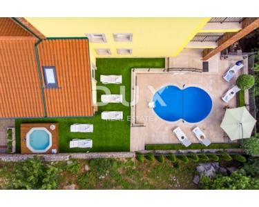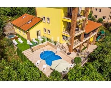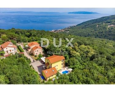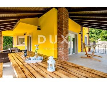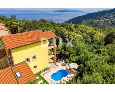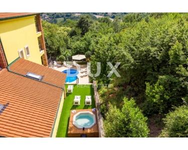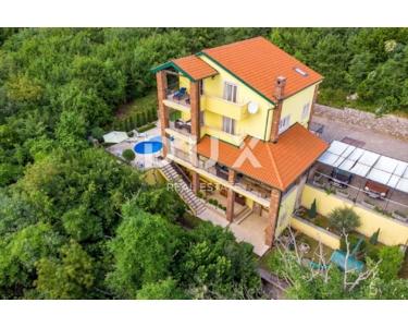 Das Haus ist alarm- und videoüberwacht. Architektonisch entworfen, strukturell perfekte Strukturen und Leistungen, Design raffiniert und eingerichtet ist eine echte Villa. Erbaut im idealen Teil von Brega, am Rande des Naturparks Učka und oberhalb von Opatija. Es ist von ausgezeichneter Orientierung, von Sonnenaufgang bis Sonnenuntergang in Sonne und Tageslicht getaucht und bietet einen wunderschönen Blick auf die Gewässer von Rijeka, die Inseln und Opatija. Es ist eine einzigartige und einzigartige Gelegenheit für diesen Teil der Stadt. Große Chance für Investitionen oder Leben und eine Kombination aus Arbeit und Privatleben! Vollständig möbliert und ausgestattet verkauft. Definitiv eine Immobilie, die maximalen Komfort, Bequemlichkeit, Privatsphäre und die Schönheit unberührter Natur bietet. Das Haus ist für Touristen zu vermieten, kategorisiert für 18 bis 22 Personen und generiert hervorragende Einnahmen. Verpassen Sie diese Gelegenheit nicht!