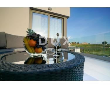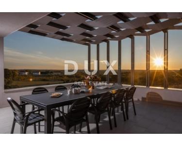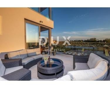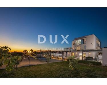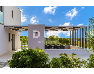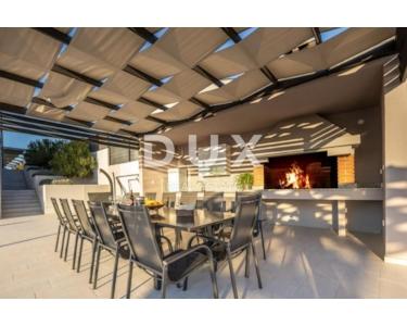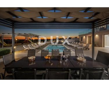 Diese schöne, märchenhafte Villa mit schöner Aussicht befindet sich in der Nähe von Nin an einem ruhigen Ort. Der Eingang zum Anwesen selbst ist beeindruckend. Auf jeder Seite des Eingangs befinden sich überdachte Parkplätze, die "unsichtbar" sind, da das scheinbar einfache Gebäude mit seinen geraden Linien mit seinen Details und Inhalten sofort unsere Aufmerksamkeit auf sich zieht. Am Eingang der Villa befindet sich eine große, überdachte Terrasse zum Essen mit einem schönen Blick auf den Ort, besonders bei Sonnenuntergang ...