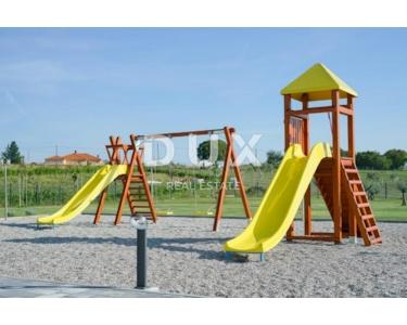Auf dieser Etage befinden sich Wohnzimmer, die Küche, Esszimmer und Wohnzimmer sowie Toiletten umfassen. Unten sind zwei Schlafzimmer mit eigenem Bad. Im Eingangsbereich führt eine Treppe in die obere Etage, wo sich vier Schlafzimmer befinden, ebenfalls mit eigenem Bad. Sie sind alle im gleichen Stil eingerichtet, aber auch hier hat jedes seine eigene Handschrift. Von der ersten Etage steigen wir in das Erdgeschoss ab, das mit allen Einrichtungen ausgestattet ist, die für einen perfekten Urlaub benötigt werden. Zusätzlich zu den Nebenräumen zum Waschen und Bügeln gibt es eine Sauna, ein Badezimmer, einen Fitnessraum, eine Kletterwand, ein Billardzimmer und Geselligkeit mit dazugehörigen Geräten und Ausrüstungen. Das Wohnzimmer öffnet sich zu einer großzügigen Sonnenterrasse am Pool und einer überdachten Sommerküche mit Esstisch. Diese Lage bietet auch einen schönen Blick auf die Landschaft, aber auch auf den Kinderbereich dieses schönen Gebäudes. Auf einer großen Wiese sind nämlich Kinderkletterer aufgestellt, sodass der Gang in nahegelegene Parks nicht nötig ist.