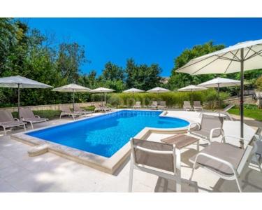 Neu renovierte Villa mit sieben Wohnungen, davon fünf mit einem Schlafzimmer und zwei mit zwei Schlafzimmern. Alles ist hervorragend mit modernen Möbeln und hochwertiger Konstruktion dekoriert und bietet die Möglichkeit für einen angenehmen Urlaub. Der Garten ist auch schön eingerichtet, umgeben von viel Grün, er hat einen Swimmingpool und eine Sonnenterrasse und einen Grill. Parkplätze für mehrere Autos sind im Hof vorhanden. Schönes Anwesen, das eine großartige Gelegenheit für den Tourismus bietet. Entfernung vom Meer 500 m.