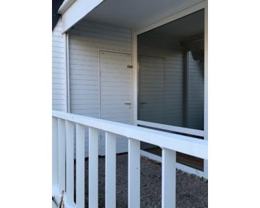 Ferner gelangt man vom Wohn,- Schlafzimmer auf die großzügige Terrasse mit daneben liegendem Abstellraum.