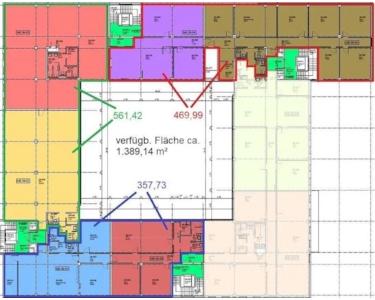 Der imposante Bürokomplex mit seiner Glasfassade wurde Mitte der 90iger Jahre errichtet und besteht aus 4 separaten Gebäuden mit insgesamt ca. 54.000,00 m² Bürofläche. Die einzelnen Büroetagen sind über verschiedene Eingangsbereiche mit Aufzugsanlagen erschlossen. Der angebotene Mietbereich von ca. 358,00 m² befindet sich im Erdgeschoss und kann nach dem Raumprofil des Mieters ausgestattet und ausgebaut werden. Die Flächen verfügen über folgende Grundausstattung: