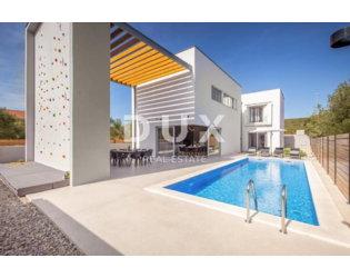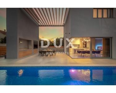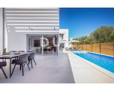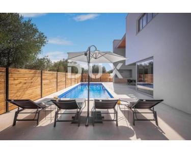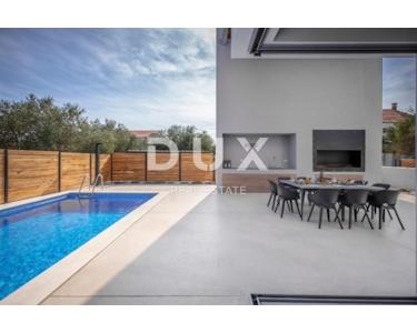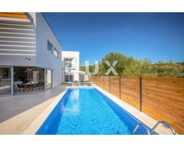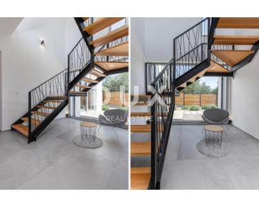Entlang der Küste gibt es einen Brunnen mit Trinkwasser, das nicht austrocknet, und das Haus von Emile Zola, einem französischen Schriftsteller. Spektakuläre Villa zum Verkauf in einer wunderschönen dalmatinischen Stadt in der Nähe von Zadar. Diese Villa ist so gebaut, dass sie jeden Kunden bis ins kleinste Detail zufriedenstellt. Das Haus besteht aus zwei Etagen und ist als Haus für Ruhe, Erholung und Genuss konzipiert. Das Haus besteht aus einem Erdgeschoss mit einer schön eingerichteten Küche, einem Esszimmer, einem geräumigen Wohnzimmer mit Kamin und Blick auf den Pool, einer Toilette und einem Freizeitraum mit Sauna und Fitnessraum. Das Obergeschoss erreicht man über eine hochwertig gestaltete Treppe. Das Obergeschoss ist zweigeteilt. Jeder Teil besteht aus einem Hauptschlafzimmer, einem kleinen separaten Arbeitsbereich mit Intimität und einem Schlafzimmer mit Doppelbett. Jedes Zimmer ist mit einem eigenen Badezimmer mit Dusche ausgestattet und ein Zimmer neben der Dusche hat ein eigenes Bad. Das Sonderangebot der Villa umfasst einen Entspannungsbereich mit Sauna, Fitnessraum und Dusche. Im schönen Hof befindet sich ein Swimmingpool von 35 m2, der von 4 Liegestühlen umgeben ist. Es gibt auch einen künstlichen Felsen mit einer Höhe von 6 m. Draußen finden Sie einen Grill und einen Esstisch im Freien mit Freunden und Familie. Das gesamte Anwesen ist vollständig von einer Betonmauer umgeben, die den Gästen Komfort und Privatsphäre bietet. Diese spektakuläre Villa mit einzigartigem Aussehen und Inhalt wartet auf neue Kunden, die einen aktiven Urlaub und ein aktives Leben verbringen möchten.
