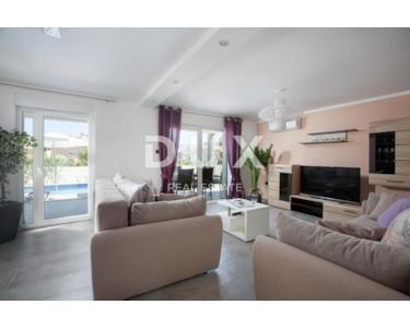 In einem Teil der Gemeinde Medulin, 1500 Meter vom Meer entfernt, steht eine Villa mit Swimmingpool in toller Lage zum Verkauf. Die Villa von 220 m2 erstreckt sich über das Erdgeschoss und den ersten Stock. Das Erdgeschoss verfügt über ein Wohnzimmer mit Billardtisch, Küche, Esszimmer, Abstellraum und Badezimmer, während der erste Stock über vier Schlafzimmer und drei Badezimmer verfügt. Die Villa ist voll klimatisiert, möbliert und ausgestattet und wird als solche verkauft. Auf dem umzäunten und gepflegten Garten, videoüberwacht, gibt es einen Swimmingpool mit Sonnendeck, Sommerküche, Parkplätze und eine Nebeneinrichtung mit Toilette, die als Ruheraum dient und auch als Wellnesscenter dienen kann. Dies ist der perfekte Ort für Ruhe und Entspannung oder das Familienleben. GELEGENHEIT!!!