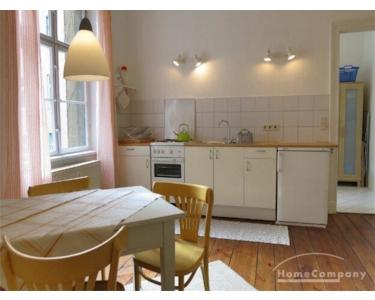 Sehr helle, freundliche und komplett möblierte Ein-Zimmer-Wohnung im schönsten Teil von Kreuzberg. Ausgestattet mit einer Couch, Doppelbett (140 cm), Sessel, Esstisch mit 2 Stühlen. Geräumige Wohnküche mit Kühlschrank, Spüle und Geschirr. Großzügiges Wannenbad und Waschmaschine