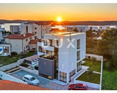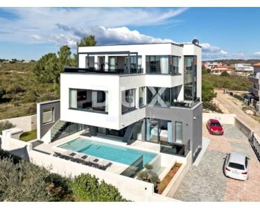 In einem Teil der Gemeinde Medulin steht eine exklusive Villa 200 m vom Meer entfernt zum Verkauf. Dieses Meisterwerk der modernen Architektur umfasst eine Fläche von 400 m2 und erstreckt sich über 4 Etagen. Alle Stockwerke sind durch einen Panoramaaufzug verbunden. Im Untergeschoss der Villa befindet sich eine Taverne mit Unterhaltung. Das Erdgeschoss besteht aus 3 Schlafzimmern mit eigenem Bad. Die erste Etage besteht aus einem Wohnzimmer mit Essbereich und offener Küche, Speisekammer, Toilette und zwei großen Terrassen mit Blick auf die Bucht von Medulin. Die zweite Etage besteht aus einem Hauptschlafzimmer mit Bad en Suite, einem Spa- und Wellnessraum mit Sauna und Whirlpool sowie einem Balkon mit Pergola, der ebenfalls einen fantastischen Meerblick bietet. Hochwertige freistehende Villa ist nach allen Energiestandards gebaut und luxuriös eingerichtet und ausgestattet. Auf dem umzäunten Grundstück befindet sich ein Überlaufbecken mit modernster Wasserreinigungstechnik, ein Sonnendeck und Parkplätze. Die Villa liegt fast am Meer in der Nähe aller städtischen / städtischen Einrichtungen, die für ein angenehmes Leben benötigt werden, und ist ideal für das Familienleben, Ruhe und Entspannung oder als Investition zur Miete für touristische Zwecke. Die voraussichtliche Frist für die Fertigstellung der Arbeiten und Ausrüstung ist März 2023.
