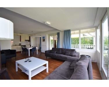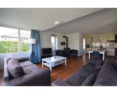 Durch die großen Fenster und die damit verbundene überdachte Veranda ist dieses Wohnzimmer ein gemütlicher Raum. Das Wohnzimmer ist mit einem Vinylboden ausgestattet. Da die überdachte Veranda Teil des Wohnzimmers ist und die Küche in offener Verbindung mit dem Wohnzimmer steht, bietet Ihnen dieses Ferienhaus viel Lebensraum. Das Haus ist komplett ausgestattet für 8 Personen. Das Wohnzimmer hat Türen, die einen direkten Zugang zur Veranda und zum Garten ermöglichen.