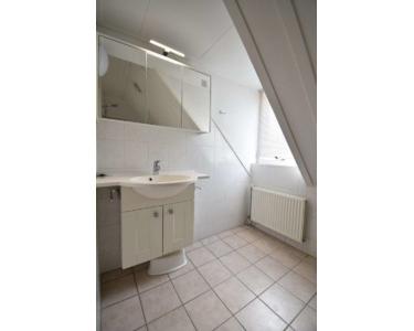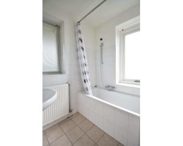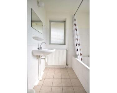 Dieses Badezimmer ist dem Schlafzimmer im Erdgeschoss angegliedert. Das Badezimmer hat ein Waschbecken, einen Spiegel, ein Regal, eine Badewanne und einen Heizkörper. Das Bad ist ca. 1,80 m hoch gefliest und das vorhandene Fenster sorgt für reichlich Tageslicht und Belüftung dieses Raumes.