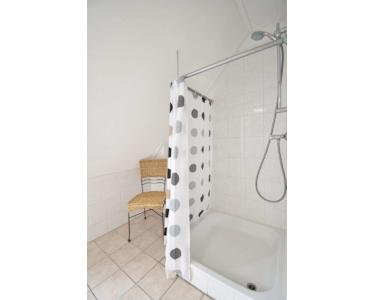 Dieses Bad befindet sich auf der Etage und ist ebenfalls zu ca. 1,80 gefliest. Dieses Badezimmer verfügt über ein Waschbecken mit Schrank, Spiegel und Dusche. Die Farbgebung sowie die Wand- und Bodenfliesen sind in allen Bädern gleich, und die Toiletten sind von den Bädern getrennt.