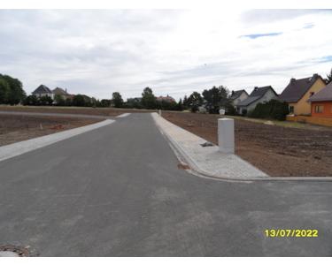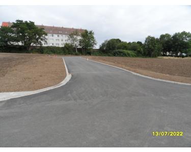 Die Anliegerstraße mit allen Leitungen der öffentlichen Medien und Laternen ist der Stadt übergeben. Ihre Hausbaufirma muss die Grundstücksanschlüsse nur noch bis in Ihren Hausanschlussraum des Hauses verlegen und die neue Straße nicht noch einmal öffnen.