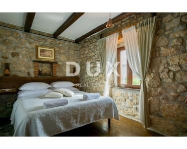Diese wunderschön eingerichtete Villa befindet sich auf einem Hügel oberhalb von Crikvenica in sehr ruhiger Lage. Das Haus ist im antiken Stil im mediterranen Stil eingerichtet und aus Stein gebaut. Es wurde dieses Jahr komplett renoviert und fertiggestellt. Es besteht aus Erdgeschoss und Obergeschoss. Das Erdgeschoss ist so gestaltet, dass es ein Schlafzimmer mit eigenem Bad, separates WC, Wohnzimmer, großes Esszimmer und Küche gibt. Im Obergeschoss befinden sich vier Schlafzimmer, jedes mit eigenem Bad mit WC. Die Zimmer sind so eingerichtet, dass jedes eine Klimaanlage zum Heizen und Kühlen und einen Fernseher hat. Der Garten besteht aus einer überdachten Terrasse vor dem Haus, wo es einen großen Tisch zum geselligen Beisammensein und Grillen gibt. Ein großer Swimmingpool wurde errichtet, ein Baldachin unter dem ein Billardtisch aufgestellt und als geselliger Raum gestaltet wurde. Am Straßenrand wurden Steinmauern errichtet, um dem Eigentümer absolute Privatsphäre zu ermöglichen. Vor dem Eingang befindet sich ein umzäunter Parkplatz für vier Autos. Dieses Steinhaus ist eine großartige Investition mit einem gut etablierten Geschäft oder Sie können Ihre eigene Ruhe genießen.